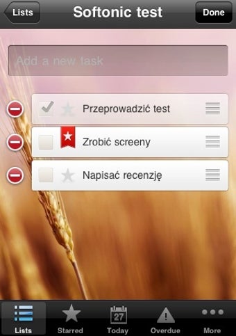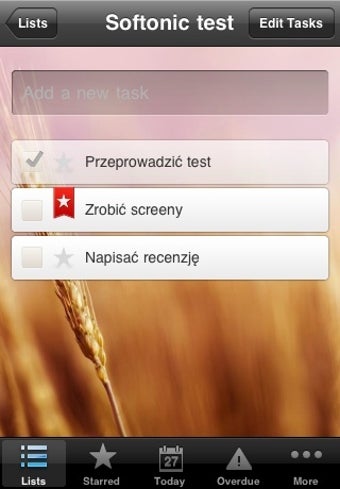 Wunderlist pozwala na sporządzanie list zadań do wykonania. Tworzymy listy zadań, a następnie wpisujemy poszczególne sprawy do załatwienia. Możemy je oznaczyć gwiazdką oraz wyznaczyć datę wykonania. Dzięki temu będziemy mieć szybki dostęp do najważniejszych zadań oraz tych, które musimy wykonać dzisiaj. Osobną zakładkę zajmują również zadania, których nie daliśmy rady wykonać w terminie.